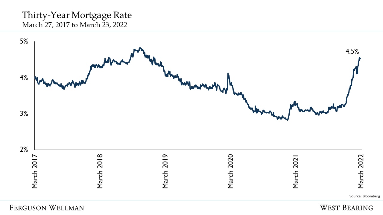 Mortgages are typically structured as a fixed-rate loan with the interest rate being influenced by several factors. If you are looking to purchase a new home, you will notice mortgage rates have moved more than 1% higher since the beginning of the year as the industry has been anticipating interest rate hikes and pricing in higher inflation. Higher mortgage rates should slow housing demand and the speed of price increases.
