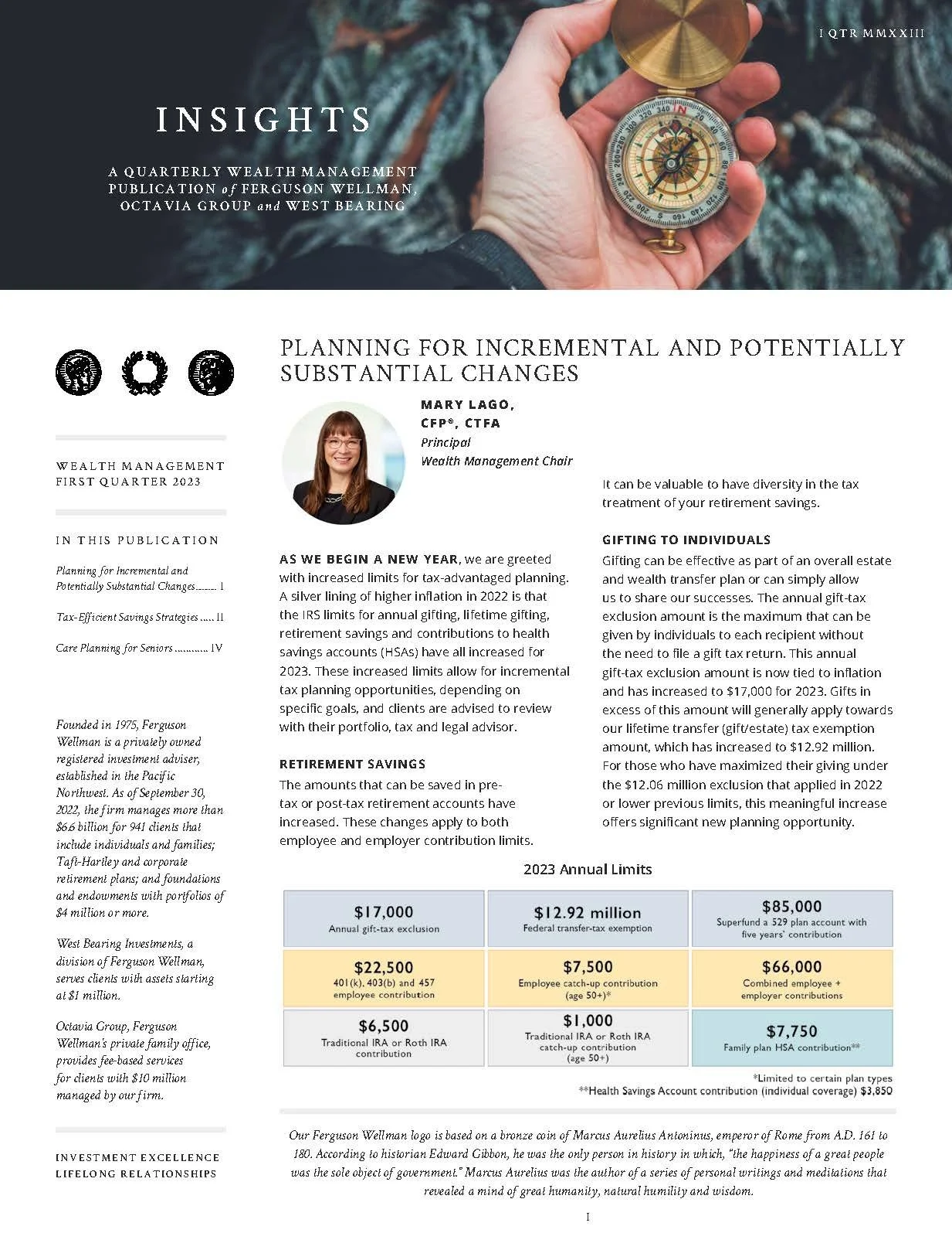 Guest User January 17, 2023 Wealth Management, Insights Wealth Management Insights First Quarter 2023: Planning for Incremental and Potentially Substantial Changes Guest User January 17, 2023 Wealth Management, Insights ← back to blog
